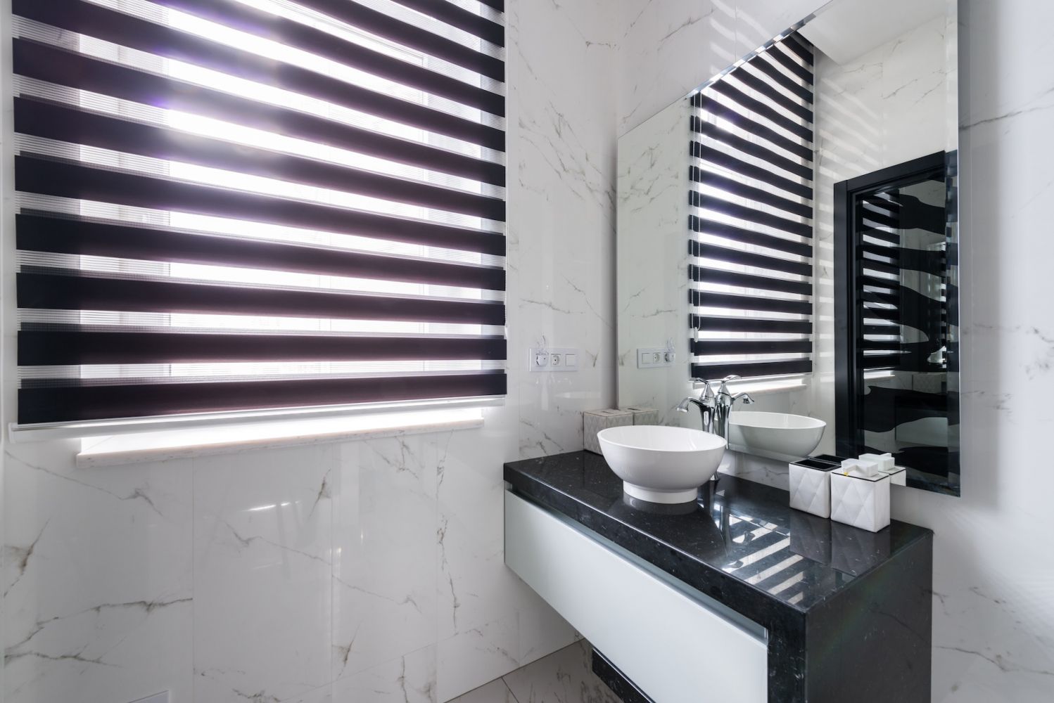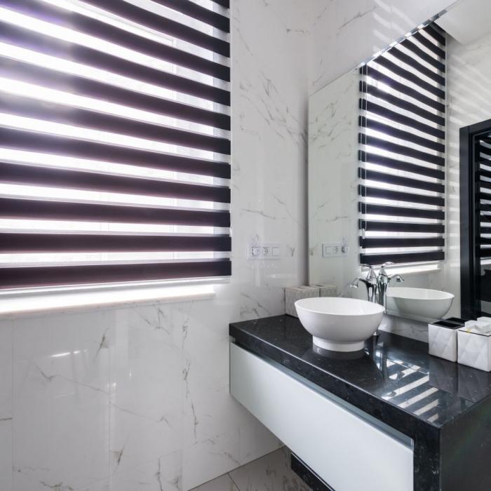 調光簾可說是捲簾的進階版,以類似斑馬紋橫向間格用不同材質,一段為不透視、另一段為透視網狀,內外雙層就可以當透視及不透視互為交叉,達到調光的功能。