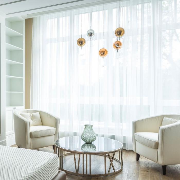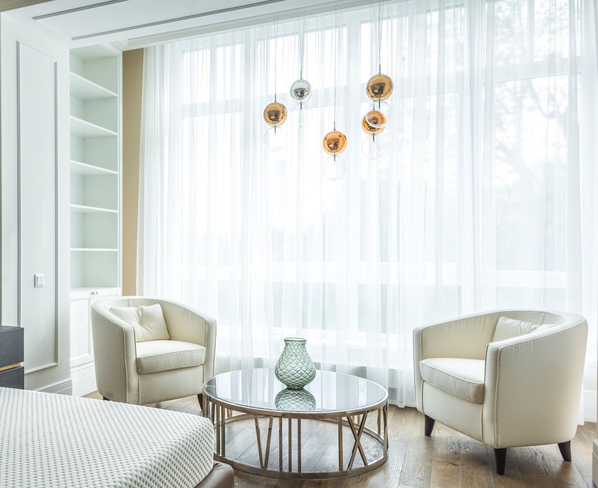 紗簾是所有紗質窗簾的統稱,本身不具有遮光功能,通常會搭配傳統落地窗簾。